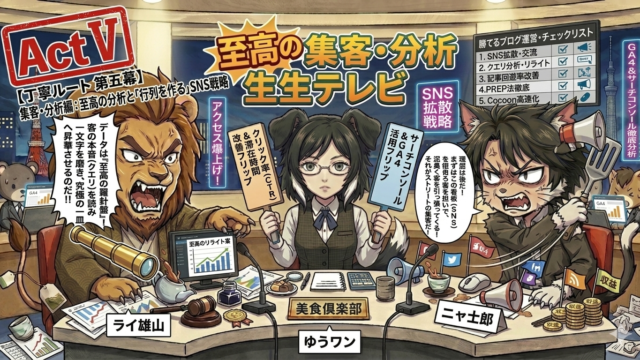 「パロディ」「ネタ」 第五幕:集客・分析(拡散)編〜至高の分析と「行列」の作り方〜 【読者の皆様へ:免責事項】 本ページは、特定の漫画作品に対する深いリスペクトに基づいた個人による二次創作(パロディ)です。登場するキャラクターは架空の動物化設定であり、公式作品とは一切関係ありません。 第五幕:集客・分析(拡散)編 〜至高の... 2026.03.08 「パロディ」「ネタ」